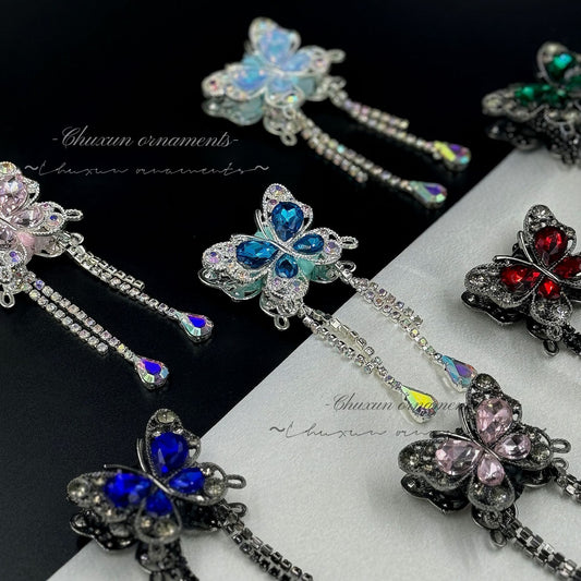 Dark Butterfly Crystal Tassel Heavy Industry Accessories Nepal Beads Wearable Pen Loose Beads Handmade Phone Chain Accessories DIY